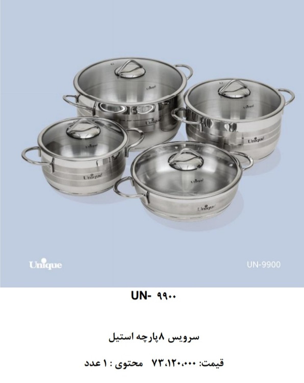 سرویس قابلمه استیل ۸ پارچه یونیک کد ۹۹۰۰